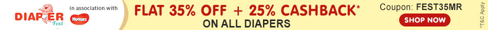 Coupon code is valid on Diapers except on Combos, Guaranteed Savings Offers, Super Savers & Gift Packs.